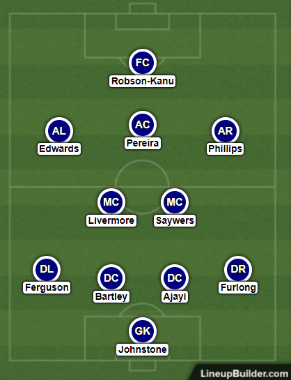 Matt Phillips is predicted to start on the right-wing with Edwards on the left and in-form Matheus Pereira in the central attacking midfield role.