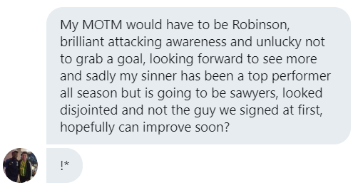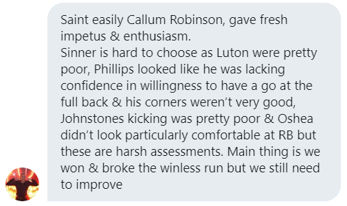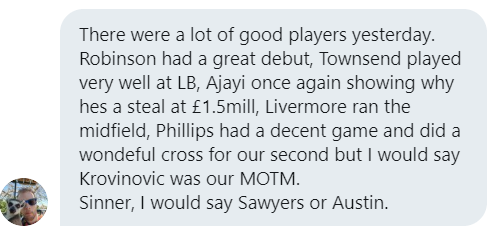 We asked our panel of West Brom Super Fans who were their Saints and Sinners for the match against Luton and most of them named Robinson as the Baggies’ best player on the day.