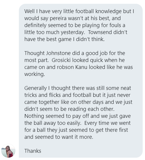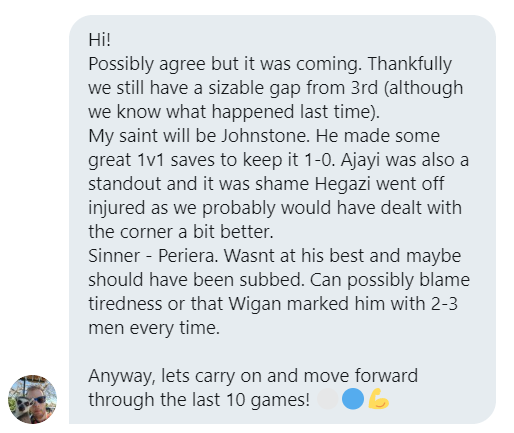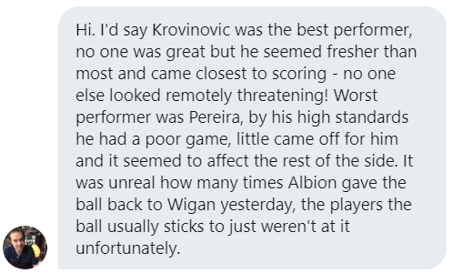 As you might expect, our Super Fans struggled to name a player who really impressed them against Wigan but it is interesting that Sam Johnstone, Semi Ajayi and Jake Livermore were mentioned quite often.