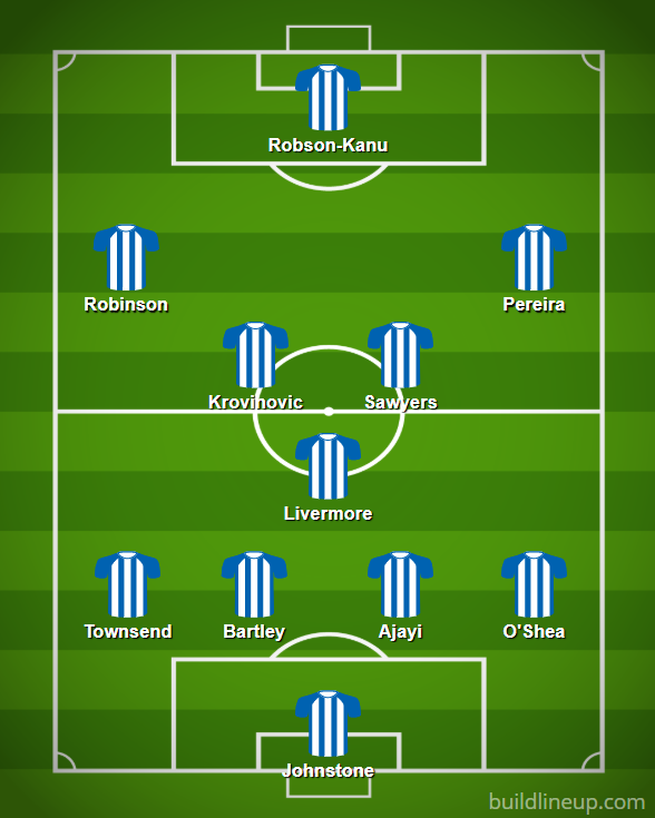 And the same goes for the midfield with Jake Livermore, Romaine Sawyers and Filip Krovinovic all playing in the three central roles.