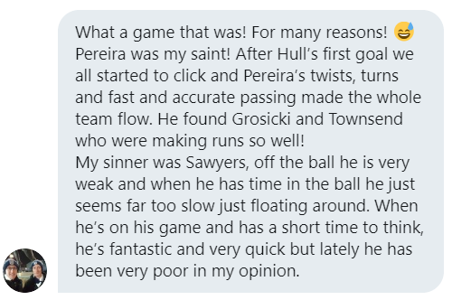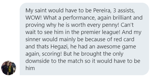 Matheus Pereira was phenomenal against Hull and it is no surprise to see that he was the most popular pick for the saint of the match.
