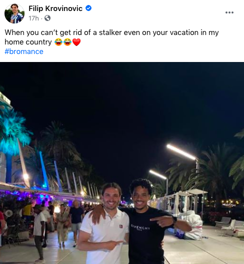 ‘Bromance’ – Filip Krovinovic shares picture with Matheus Pereira in Croatia