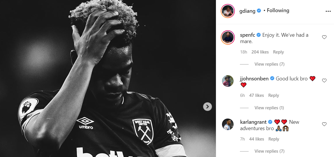 After the Baggies completed the signing of Diangana, 22, from West Ham on Friday night, a number of Hammers players rushed to the winger’s Instagram to react to the move.