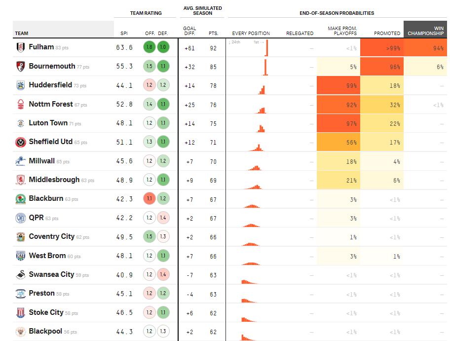 FiveThirtyEight have crunched the numbers and now say that West Brom have an outside chance of making the play-offs. They also have a measly one per cent chance of winning promotion overall.