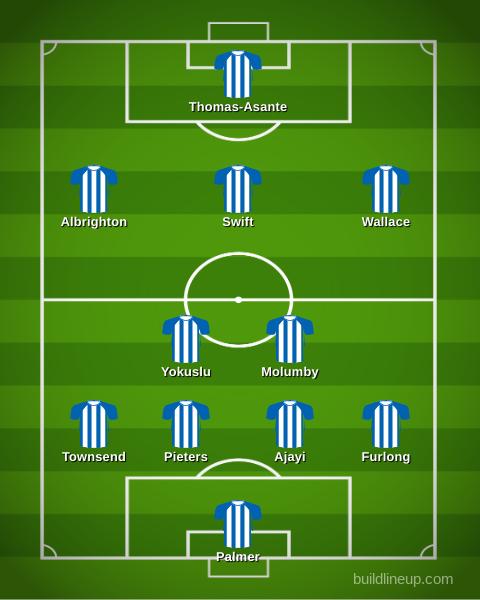 Brandon Thomas-Asante is therefore expected to lead the line, while Jed Wallace should be fielded on the right wing and John Swift in a central attacking position.
