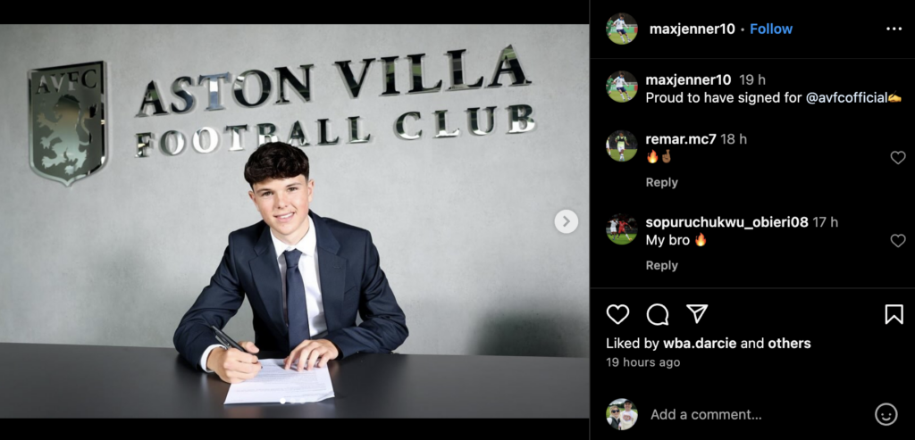 Aston Villa have confirmed the signing of West Brom midfielder Max Jenner in their latest scholarship drive at Villa Park.