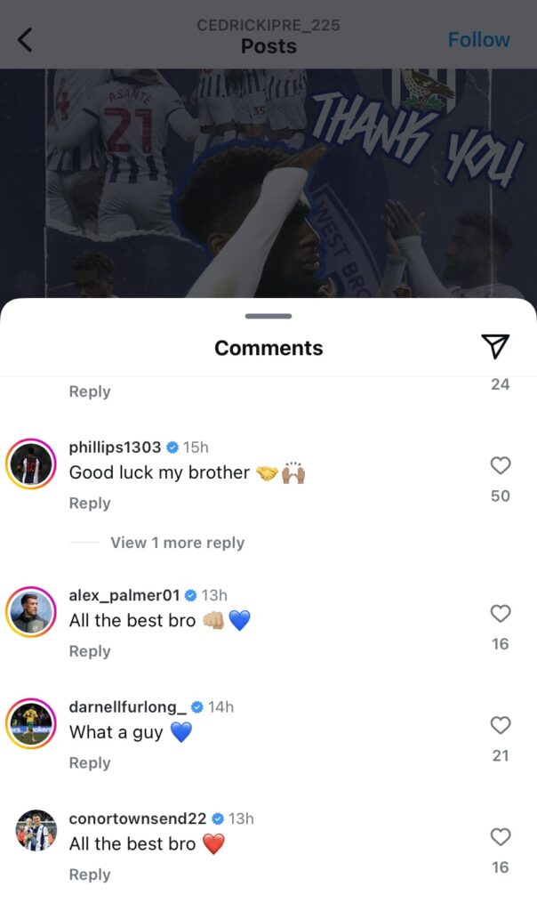 “What a guy,” the full-back swiftly commented on Kipre’s post – joined by several other Baggies players who recognise the impact the Ivorian had on Carlos Corberan’s team, particularly last season.