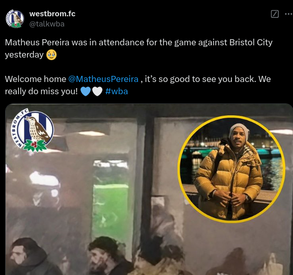 West Brom supporters have told Shilen Patel to bring Matheus Pereira back to The Hawthorns after the circulation of an image of him at the Bristol City clash.