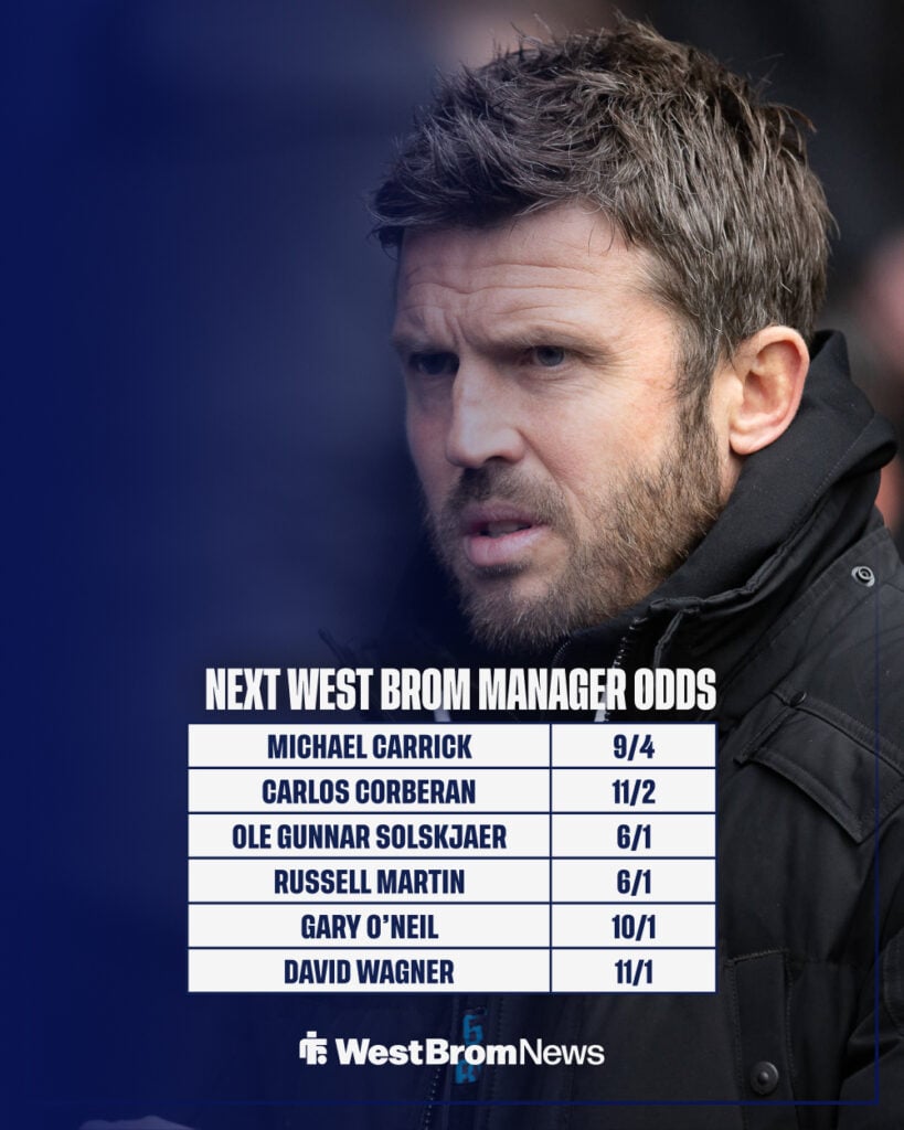 Carrick was previously 3/1 to be the next West Brom manager, but those odds have been slashed to 9/4 by one bookmaker.